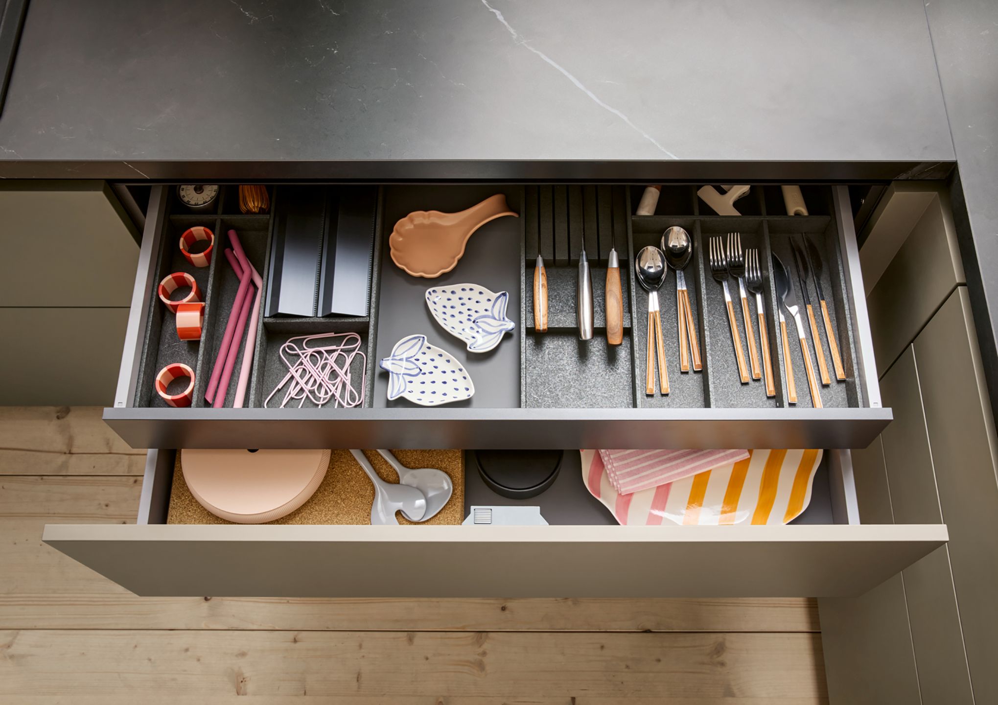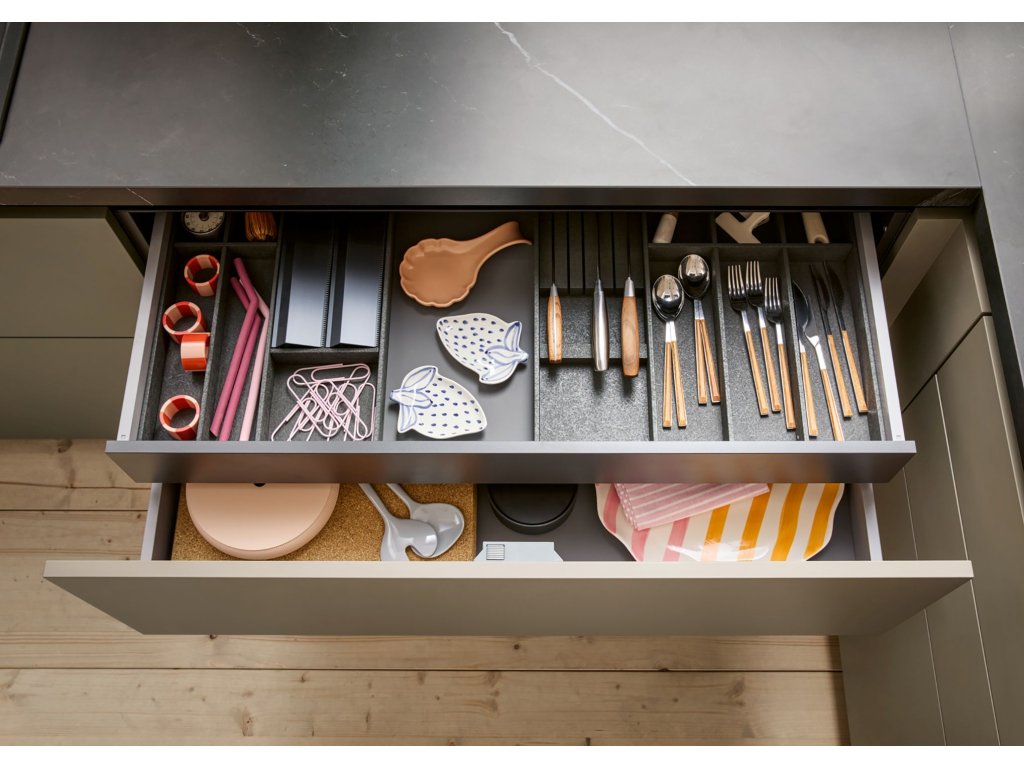 - skryté (anglické) nízké zásuvky pro příbory a příslušenství
