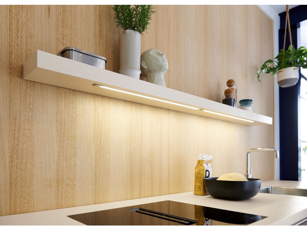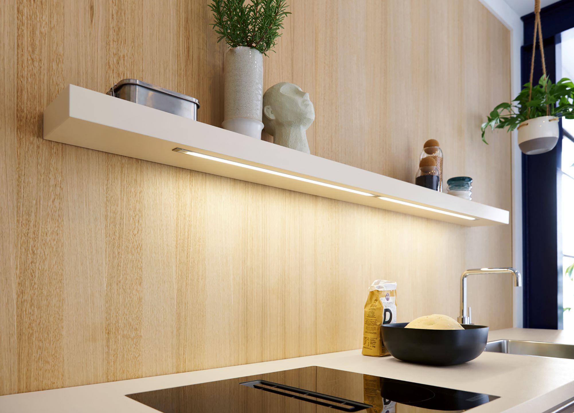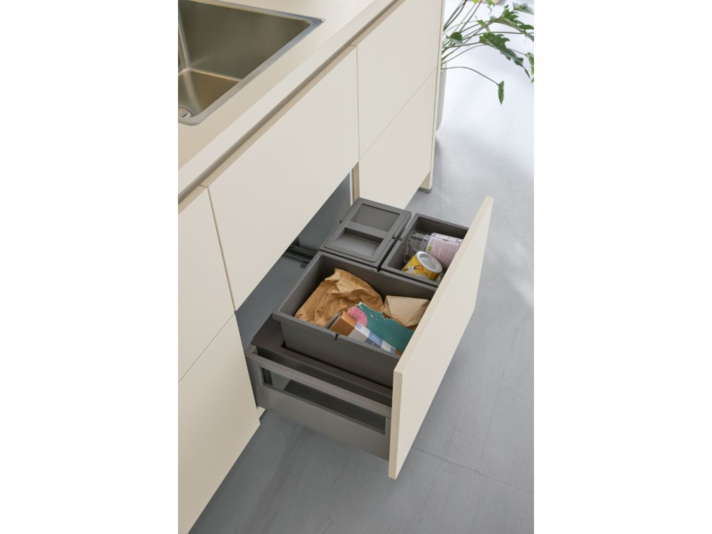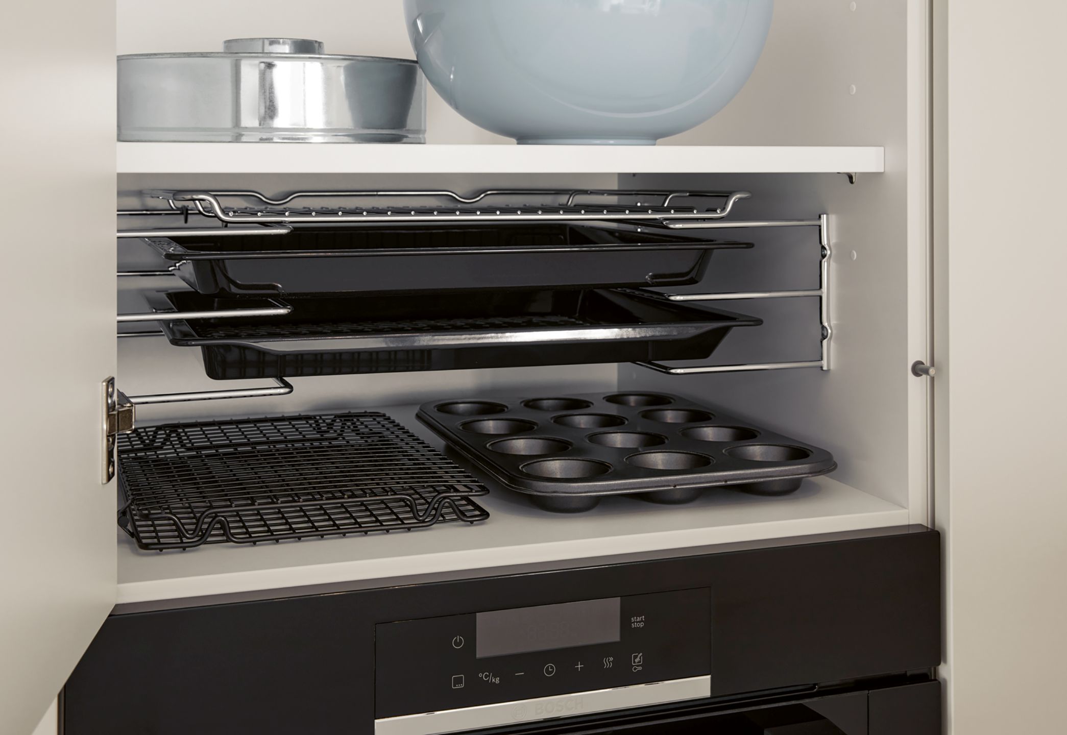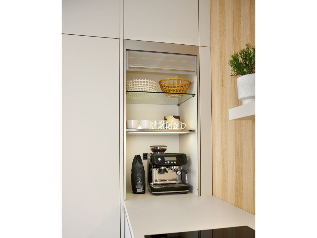 jednotný a harmonický vzhled. To je zdůrazněno i novým systémem úchytek Single X. Jedna úchytková prohlubeň umístěná těsně pod pracovní deskou, další kuchyňská dvířka otevíravá pomocí TIP-ON nebo C-DRIVE. Design celistvých dvířek u vysokých skříní od podlahy až ke stropu (bez rozdělení) vytváří jednolitou plochu, dokonale decentní a vizuálně přitažlivou.