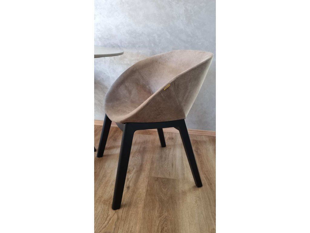 Komfortní skořepinový tvar sedáku, vykouzlí z tohoto křesílka oblíbený kousek pro pohodlné sezení. Skořepina v čalouněné verzi látkového nebo koženého potahu s dřevěnou podnoží.