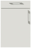 Kuchyně v saténovém provedení v pískově šedé barvě.