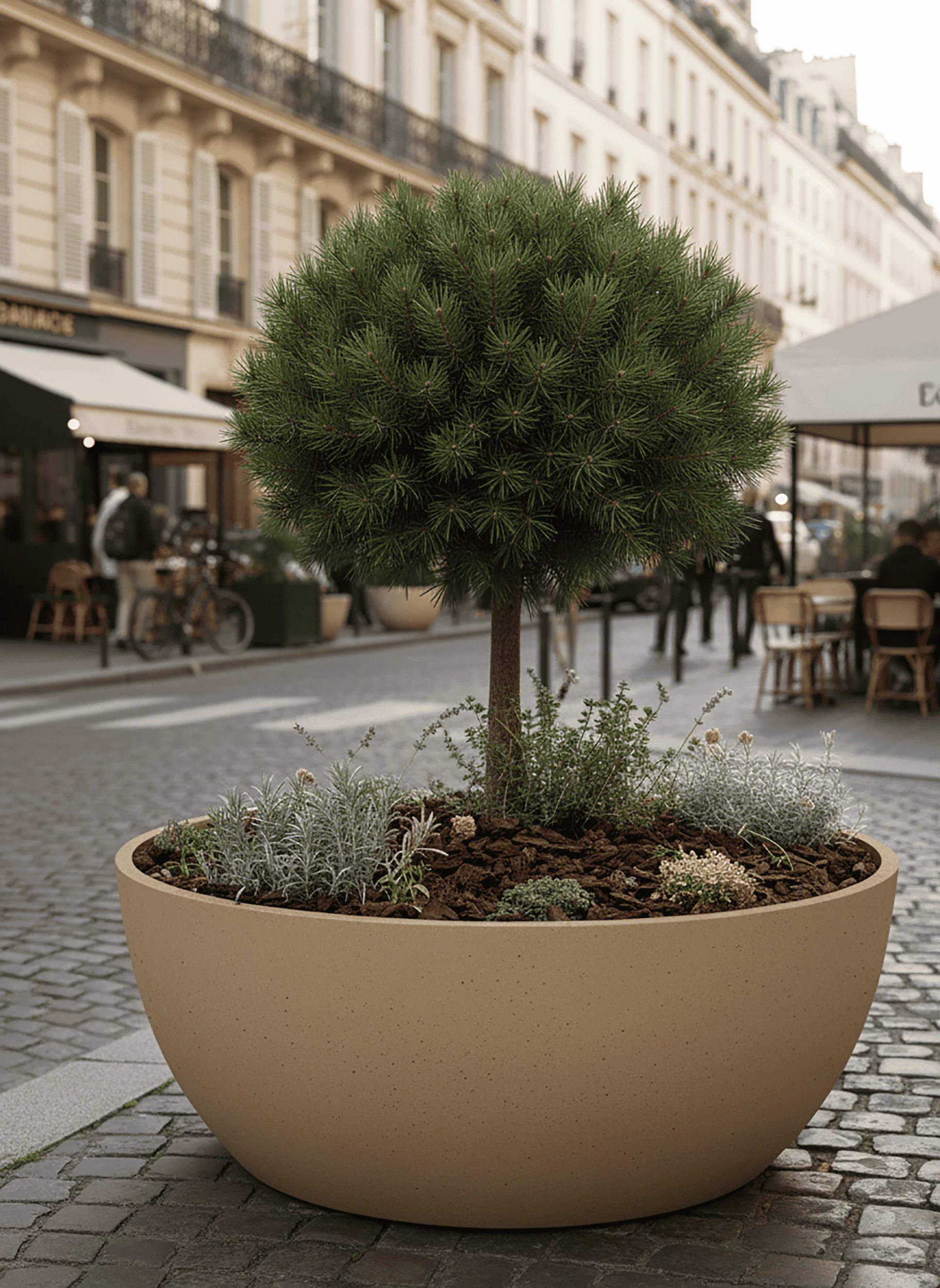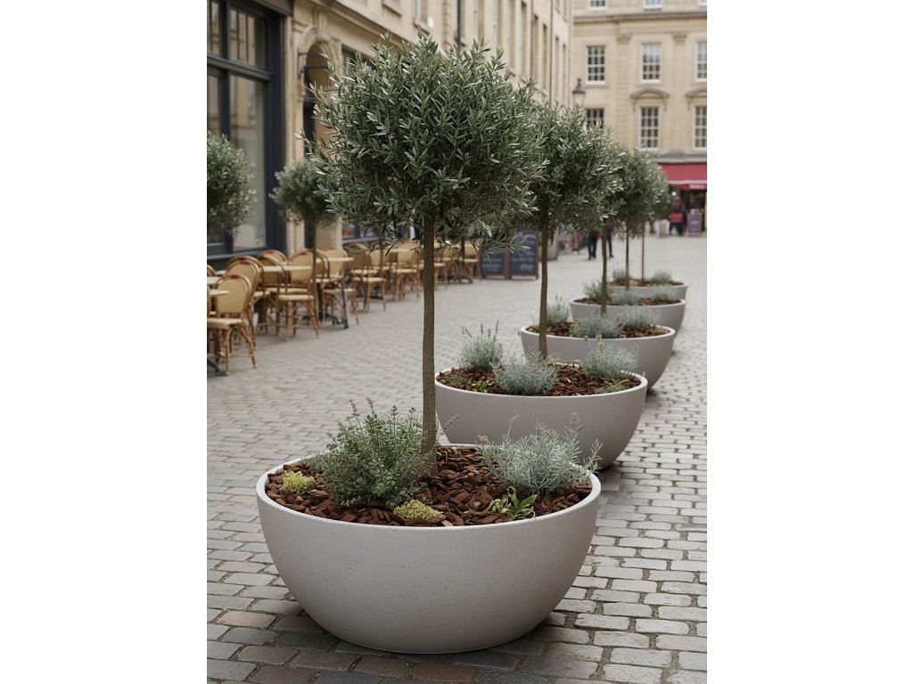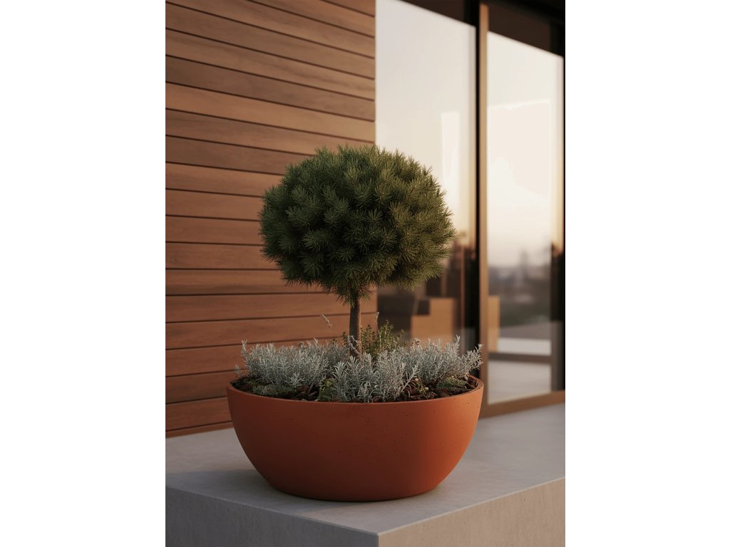 Díky své prostornosti poskytuje ideální podmínky pro okrasné jehličnany, listnaté stromky na kmínku, větší keře i kombinace okrasných travin a kvetoucích trvalek. Správně zvolená výsadba vytvoří efektní celoroční dekoraci, která odolá větru, slunci i mrazu.