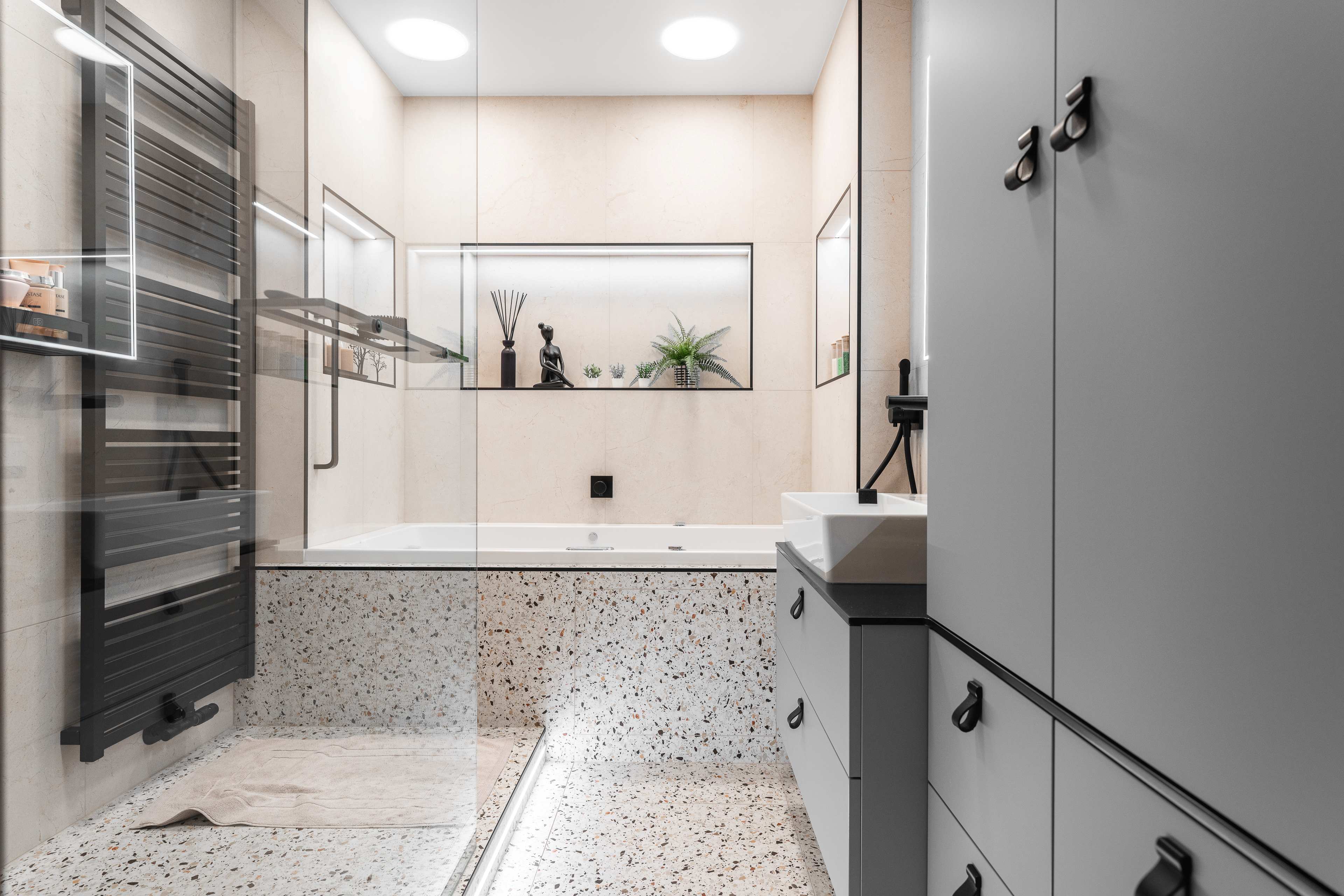 Interiér bytu Žabovřesky - realizace technické místnosti, koupelny a WC