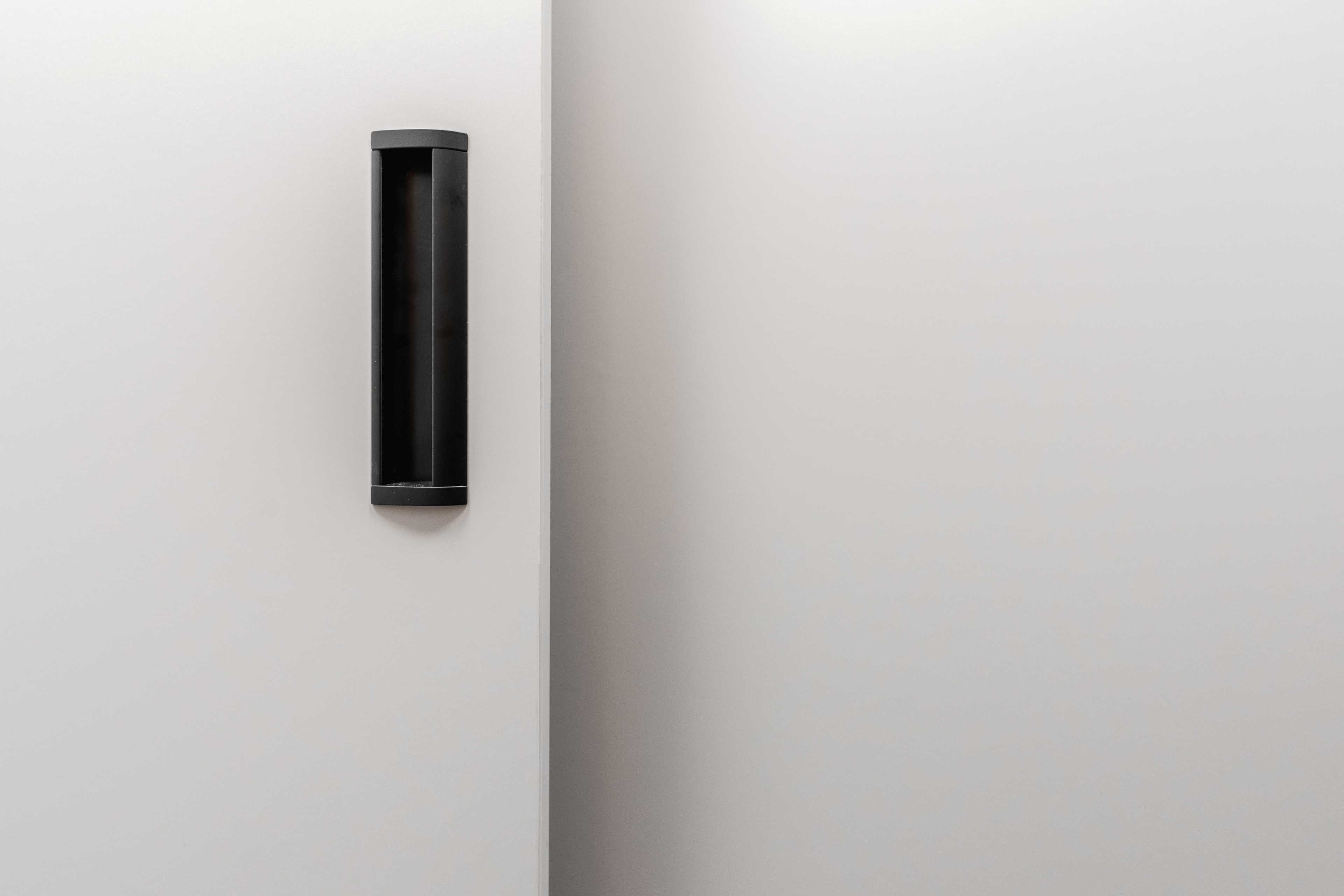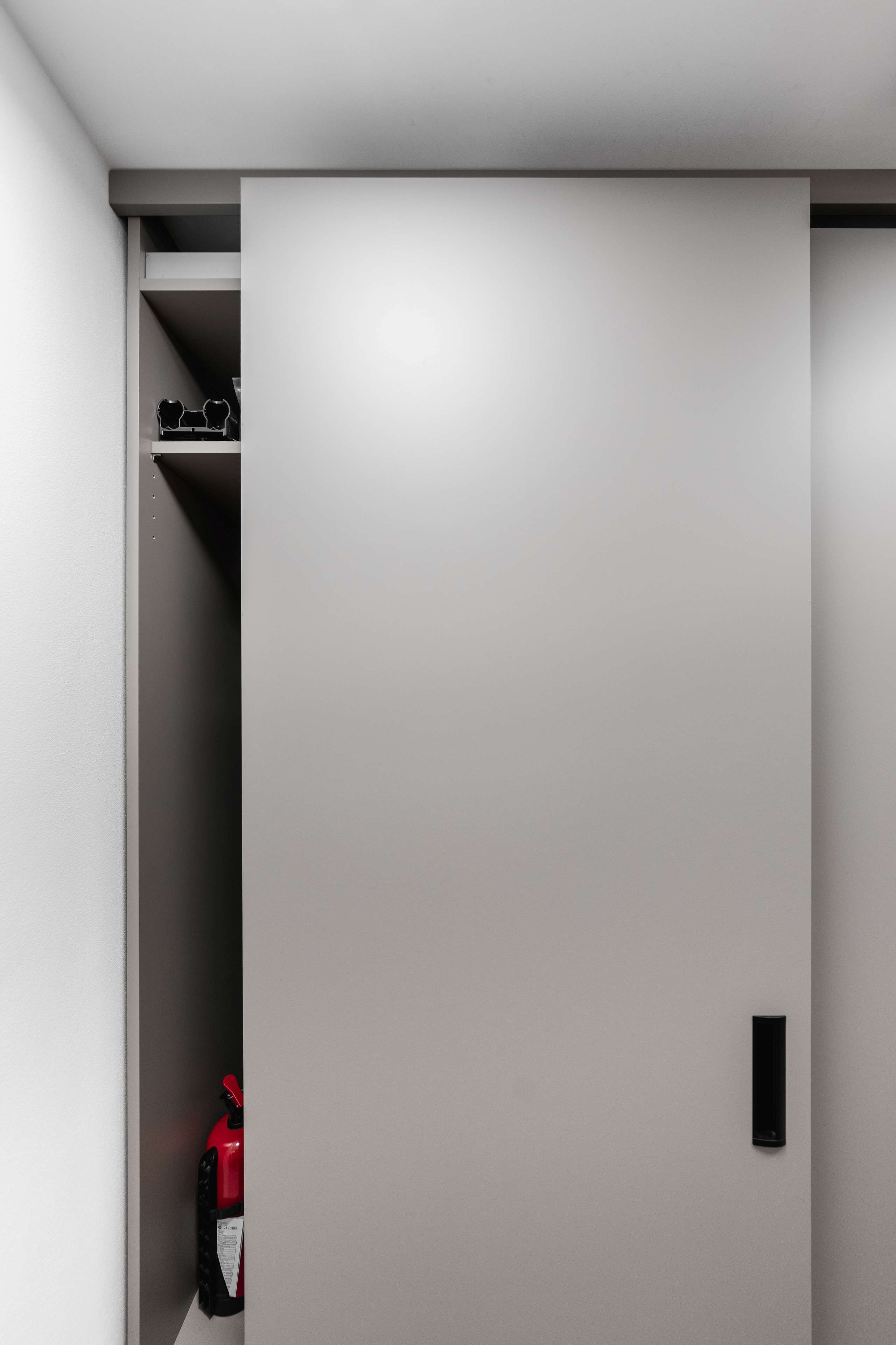 U velké skříně v technické místnosti s liniovými překrývajícími se posuvnými dveřmi jsou svisle zafrézované úchytky, aby nic nepřekáželo liniovému zasouvání dveří.
