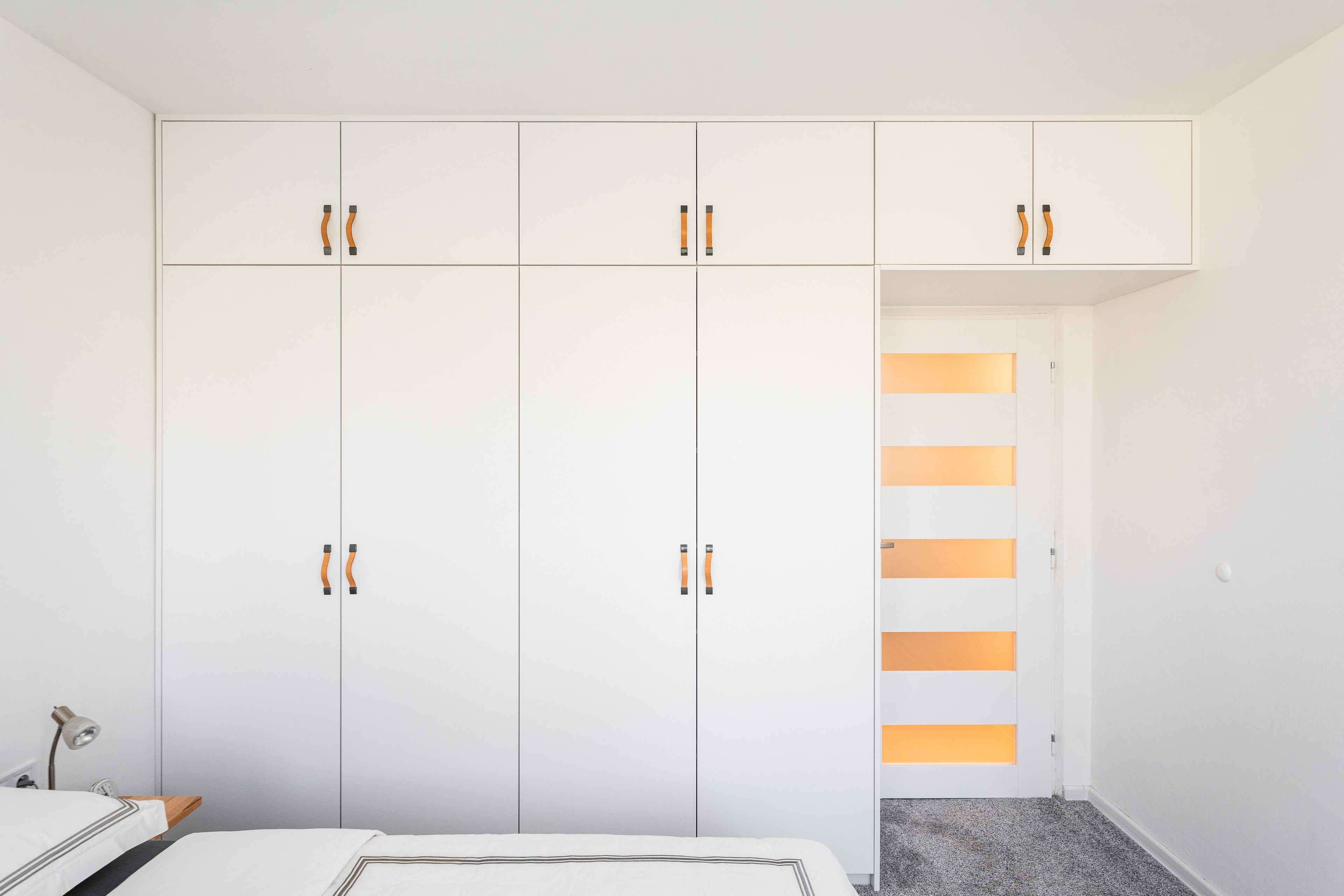 Rádi našim klientům nabízíme a rádi používáme skříňové nádstavce nad dveřmi. Za nás mají pro klienty přidanou hodnotu v dalším úložném prostoru, stěna působí z pohledu ložnice kompaktně, z chodby více uzavřeně a útulně.