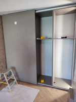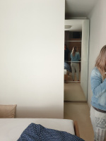 A mohli jsme nastoupit my. Montáž dvou vestavných skříní s posuvnými dveřmi, zrcadlo vedle okna, které nám opticky prohloubí prostor a krásně zrcadlí exteriér i interiér a klame :) podívejte se níže na fotky