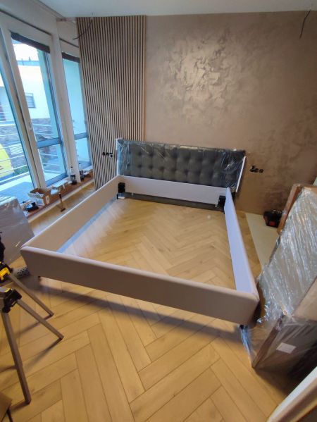 Dominantou ložnice je nástěnná Luxury stěrka a postel Eden. Stěrka v provedení glamour z řady Luxury, kvalitní postel Eden - dovoz Itálie, v potahu příjemném na omak, s výškou čela 117 cm, s výškou korpusu 44 cm, s komfortní výškou pro matraci 63 cm od podlahy.