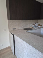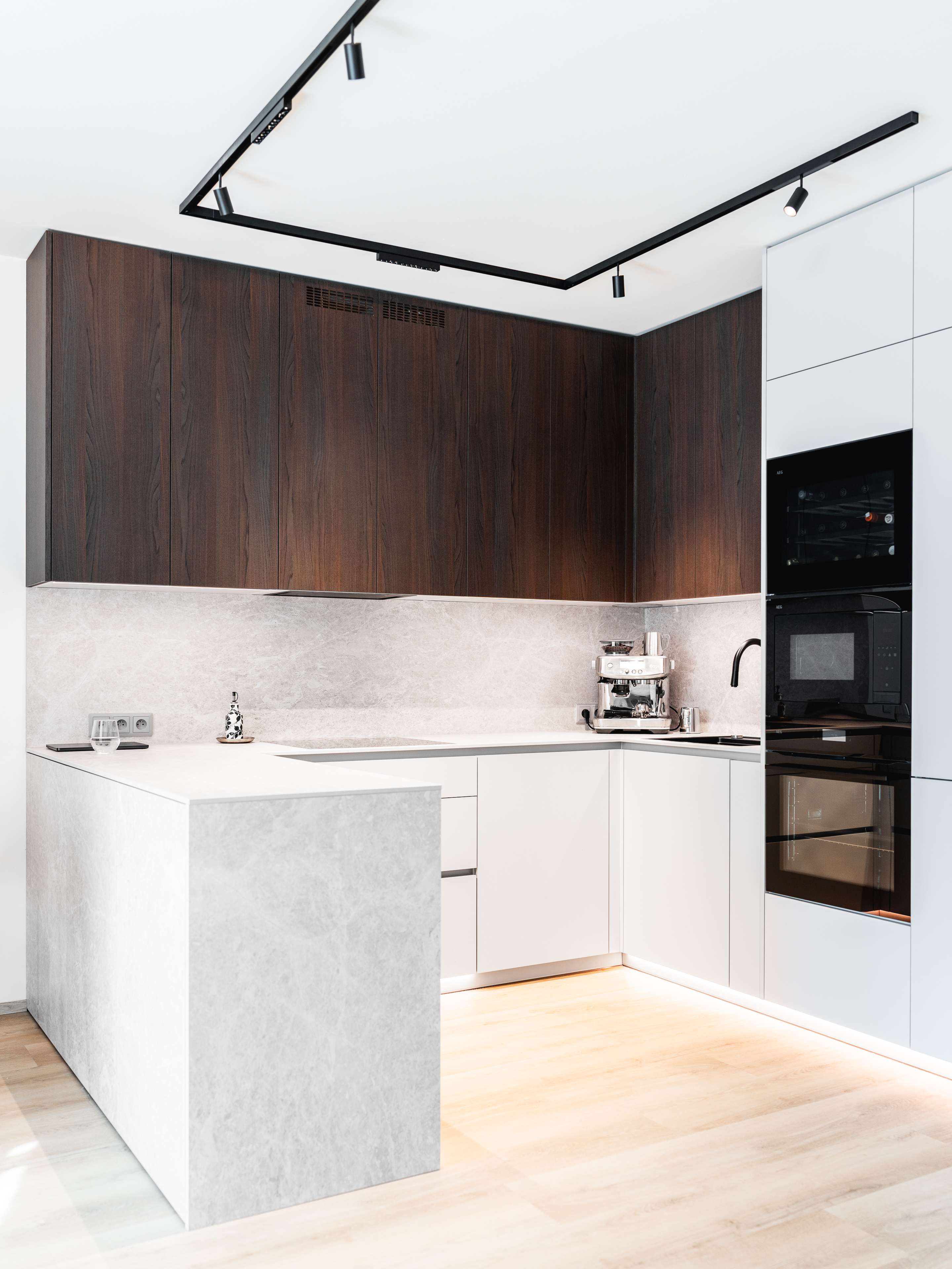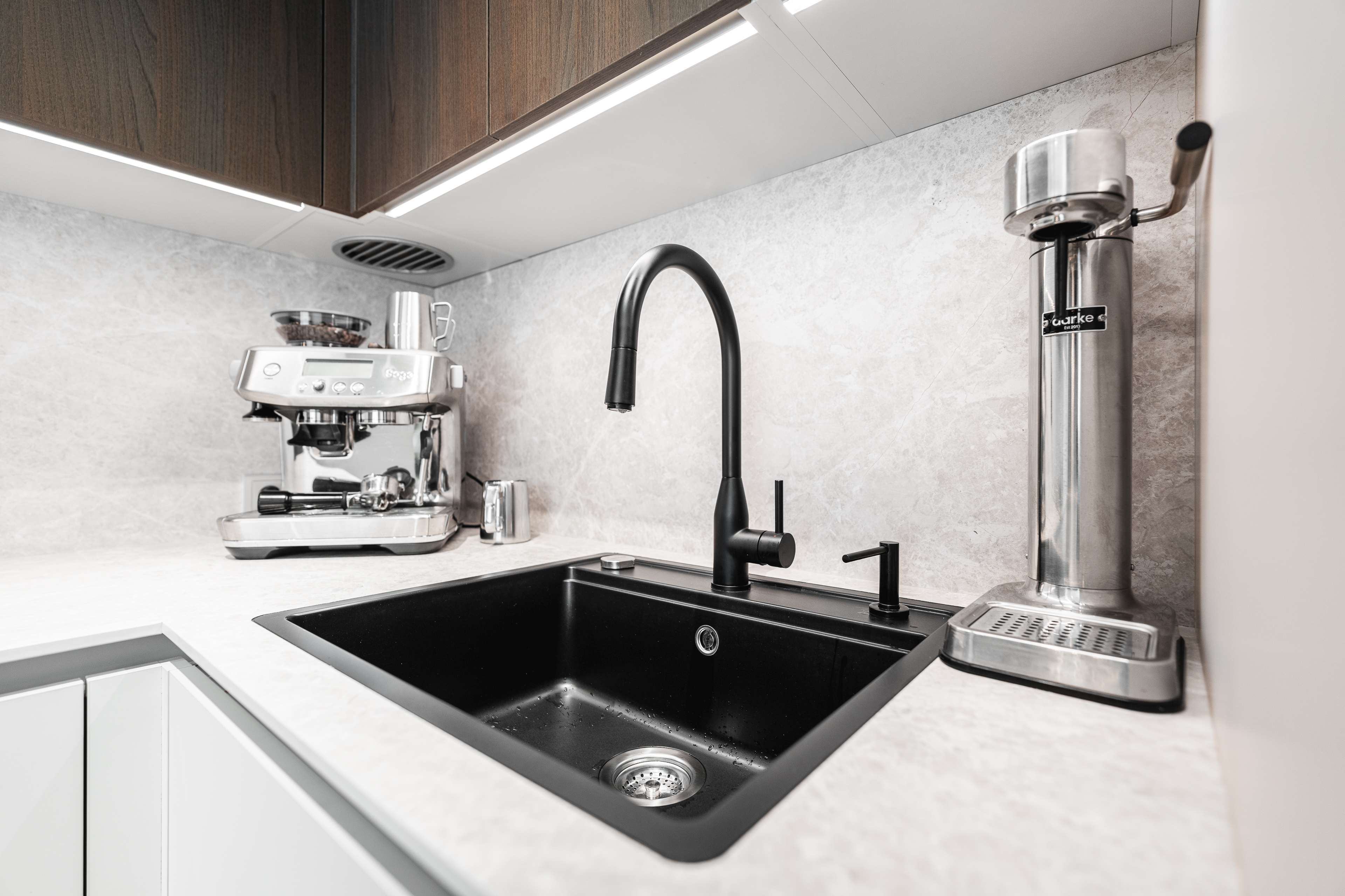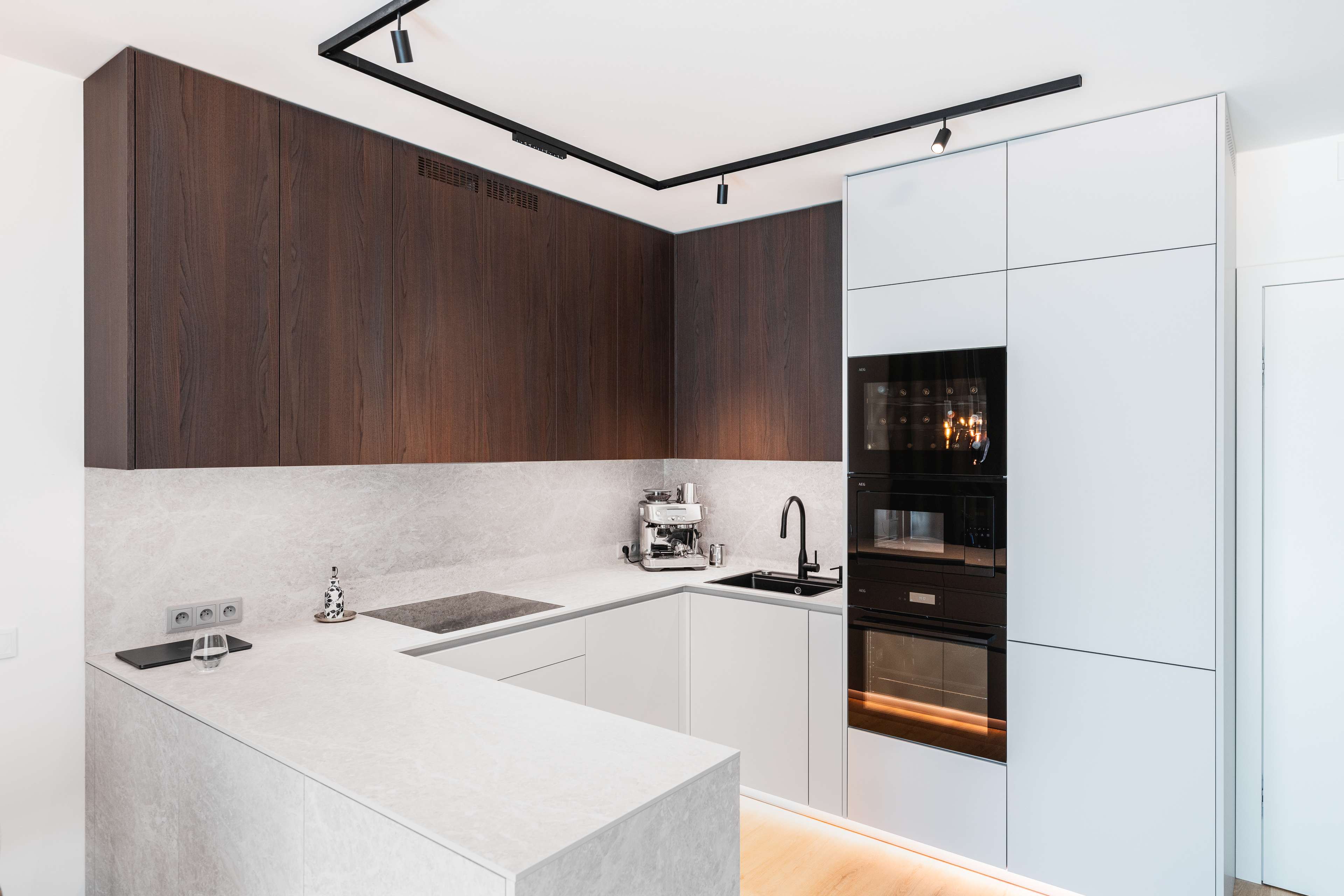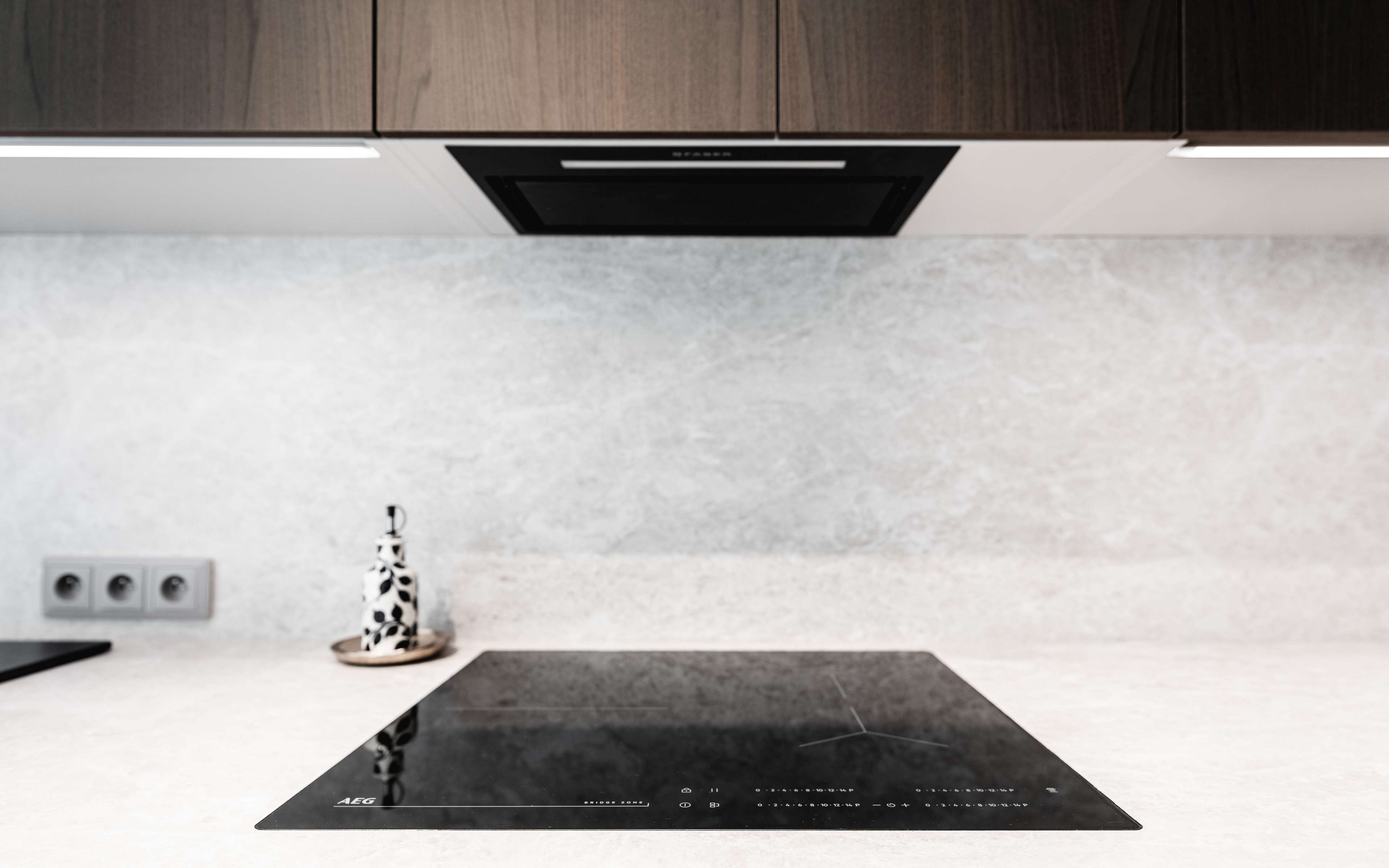 - materiálem Fenix NTM - oboustranný matný lakovaný laminát (HPL), zpracovaný za pomocí nanotechnologie. Je odolný proti mechanickému a tepelnému působení, hrany jsou lepené PUR technologií a opět speciální ochranou proti otiskům prstů, čili ve finále přidaná hodnota pro klienty, odolný materiál a snadná údržba