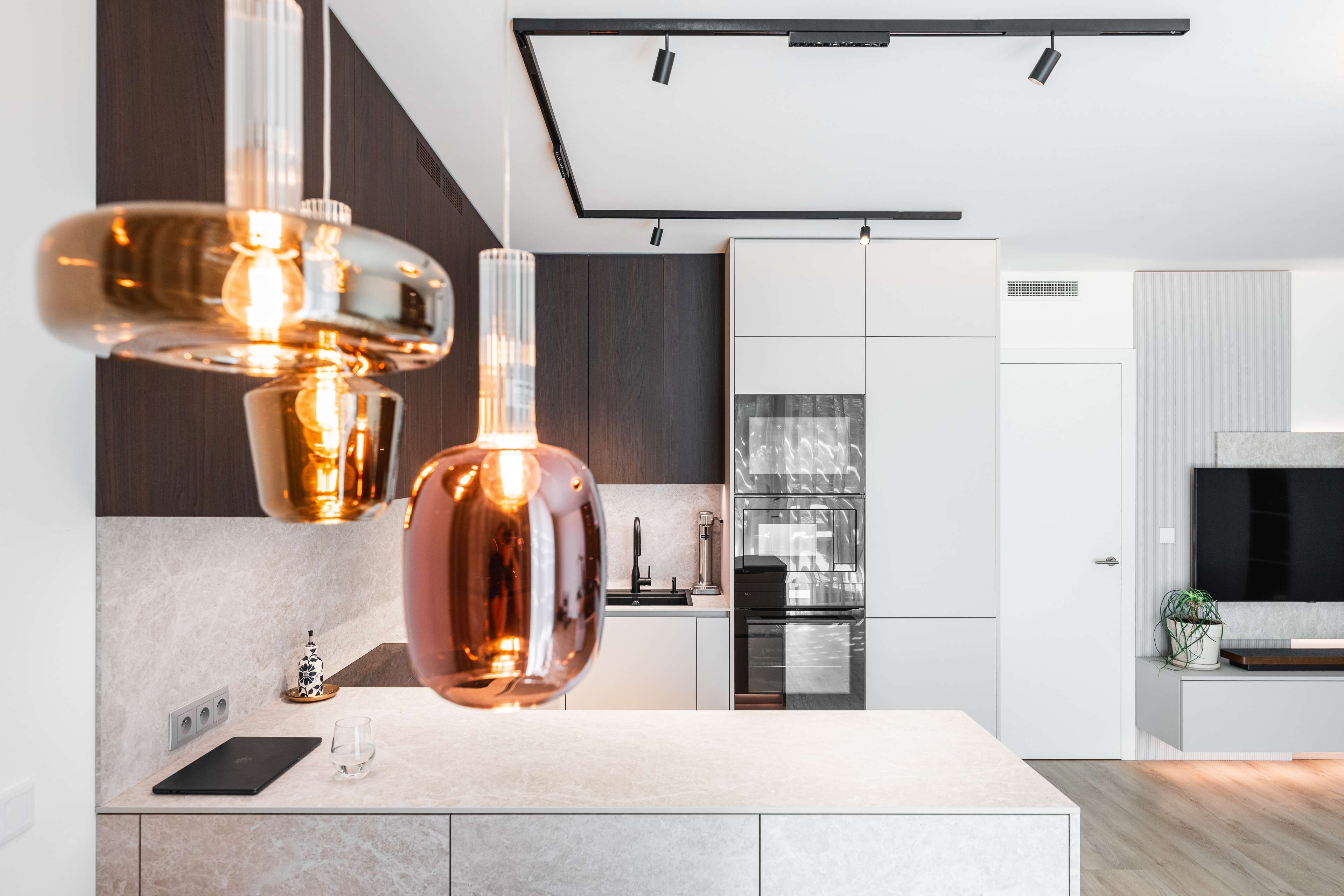 Veškeré ovládání a osvětlení jsme řešili s kolegy z Loxone. Jednalo se o kompletní ovládání bytu jejich technologií. A jak sami kolegové z Loxone říkají, řeč není o chytrých hračkách pro domácnost, ale o domově, který sám ví, co je třeba. Loxone je jako mozek, který sám propojí jednotlivé jednotky tak, aby společně fungovaly jako jeden fungující celek.