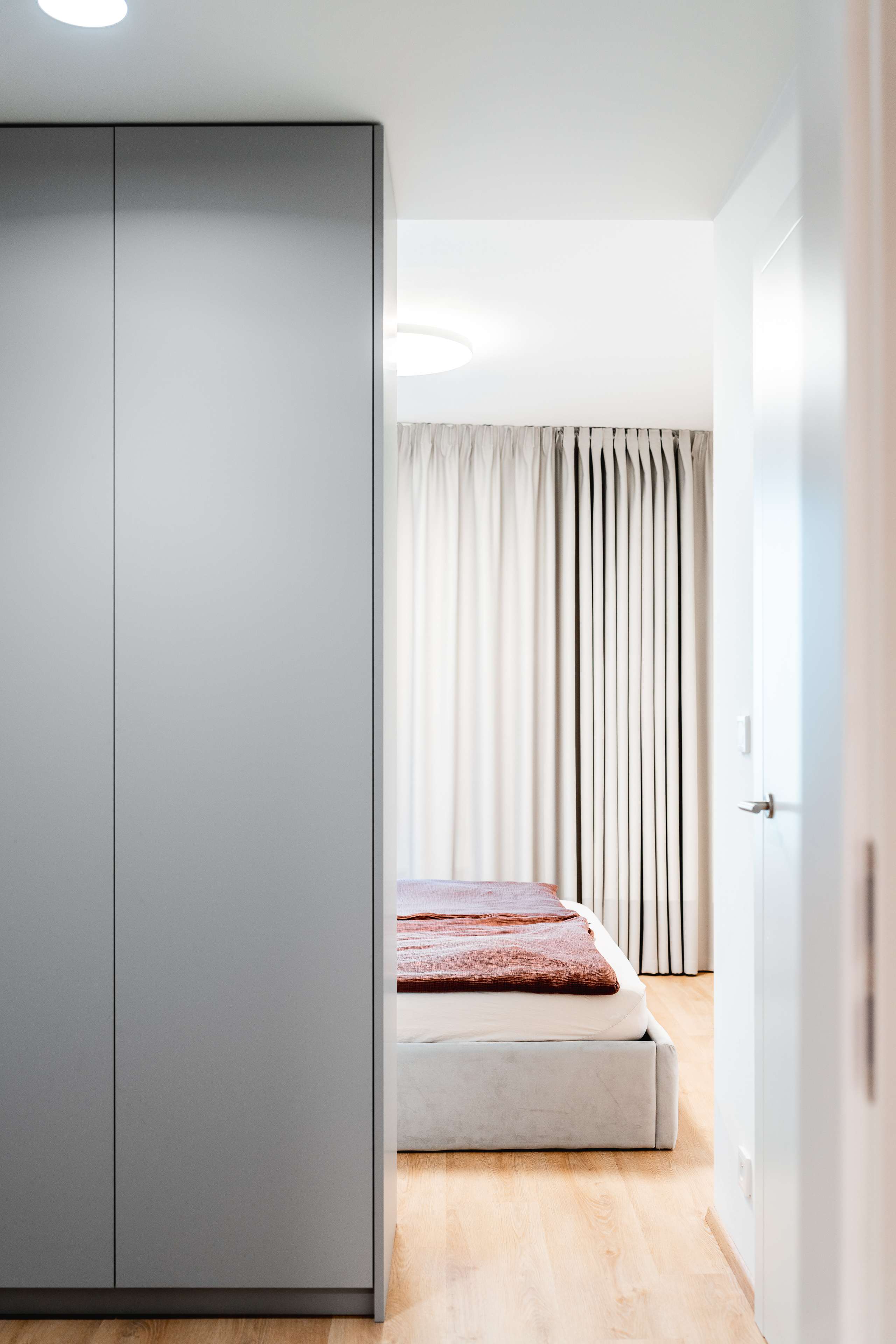 Klienti měli požadavek, aby nábytková dvířka skříní byly na celou výšku místností. Někde to možné bylo, jinde ne. Diorit se vyznačuje tím, že většina bytů se stáčí a téměř žádný úhel není pravý. Omezení jsme měli i v kotvení nábytku do akustických stěn. Ale se vším jsme si poradili.