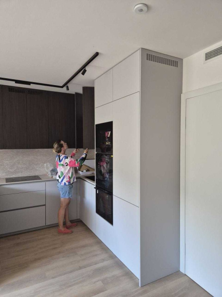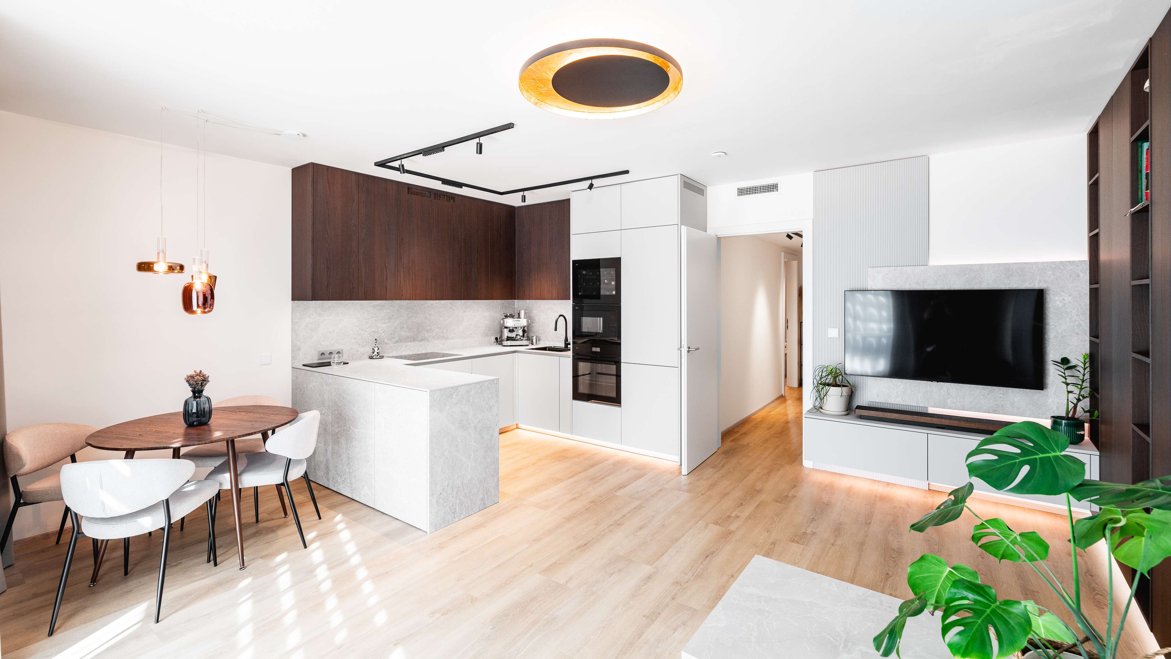 Naše další realizace. Tentokrát je komplet celý interiér vyrobený a dodaný na zakázku do bytu velmi moderního a unikátního projektu v Dioritu. Klienti nás oslovili v době, kdy měli zpracovaný návrh od své paní architektky. Měli jen hmotovku (2D návrhy), takže jsme měli představu, ale neměli jsme nic dalšího. Bylo nutné návrh zpracovat do technické podoby. V našem případě to znamenalo celý návrh překreslit do vizualizace, následně zpracovat rozměrové plány, abychom se měli čeho chytit. Důležité bylo, abychom viděli my i klienti veškeré míry, se kterými můžeme pracovat. Výšky, šířky, hloubky, průchody atd...