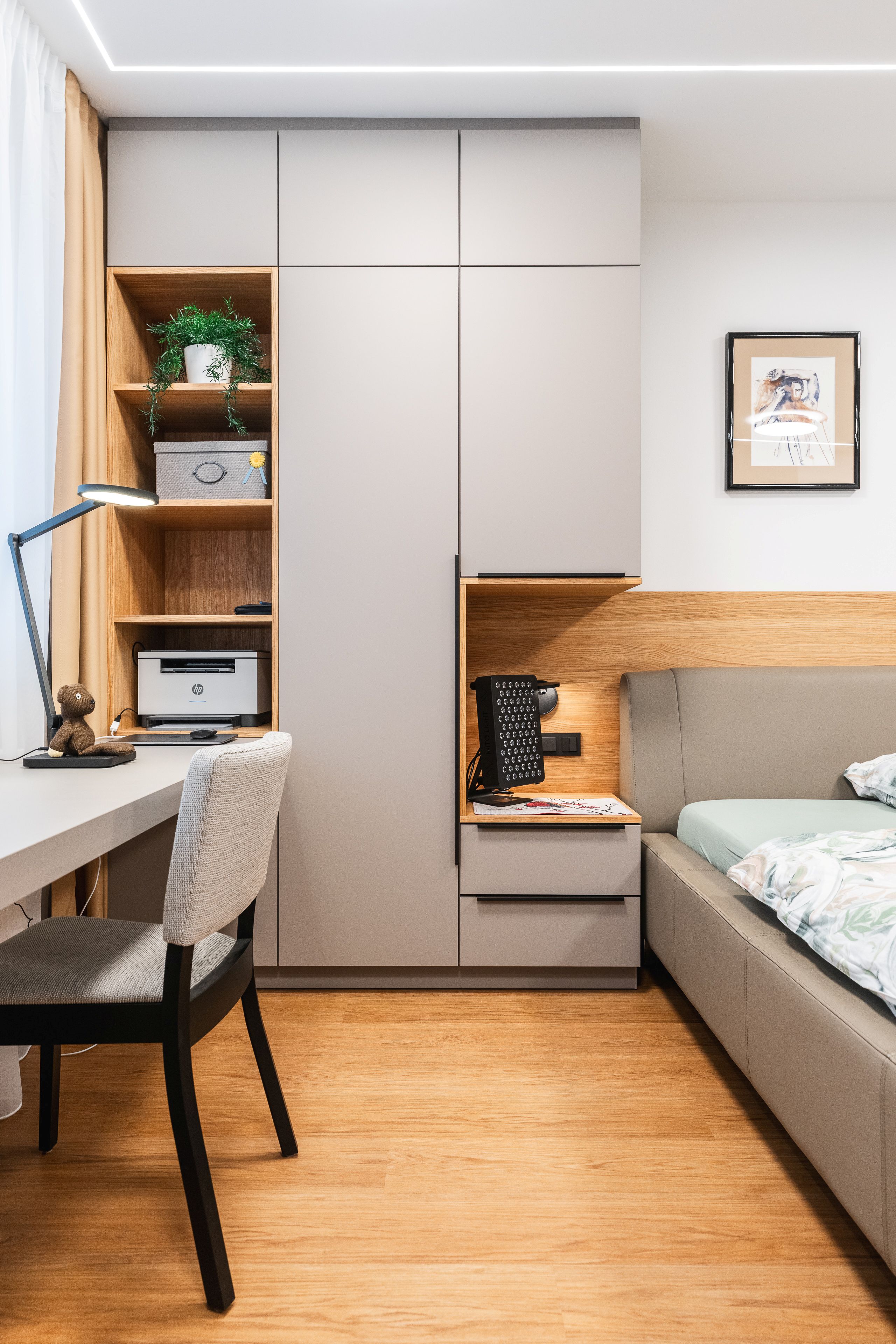 Paní měla přesně představu co a jak má být umístěné, kolik kde a jaký úložný prostor. Detailně připravený projekt, který jsme rozpracovali, technicky doladili a zrealizovali.
