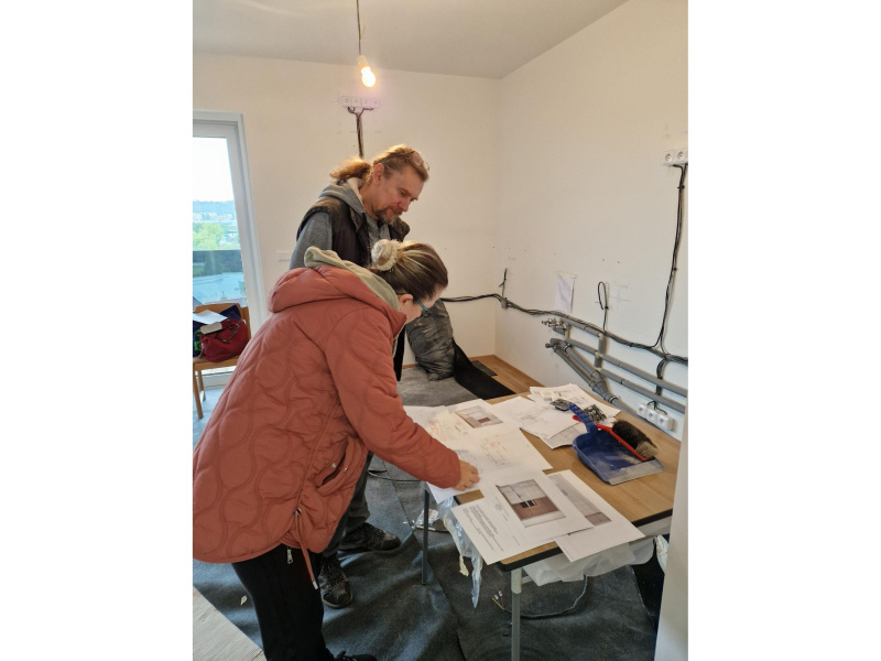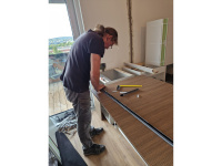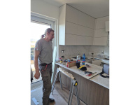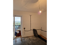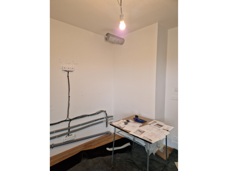 Takže standardně jsme si instalace připravili podle našich potřeb a požadavků. Voda, odpad byly tažené po obvodu stěny, elektriku jsme částečně vedli v lištách a kde bylo nutné, tam se nechala zaseknout a zapravit stěnu.