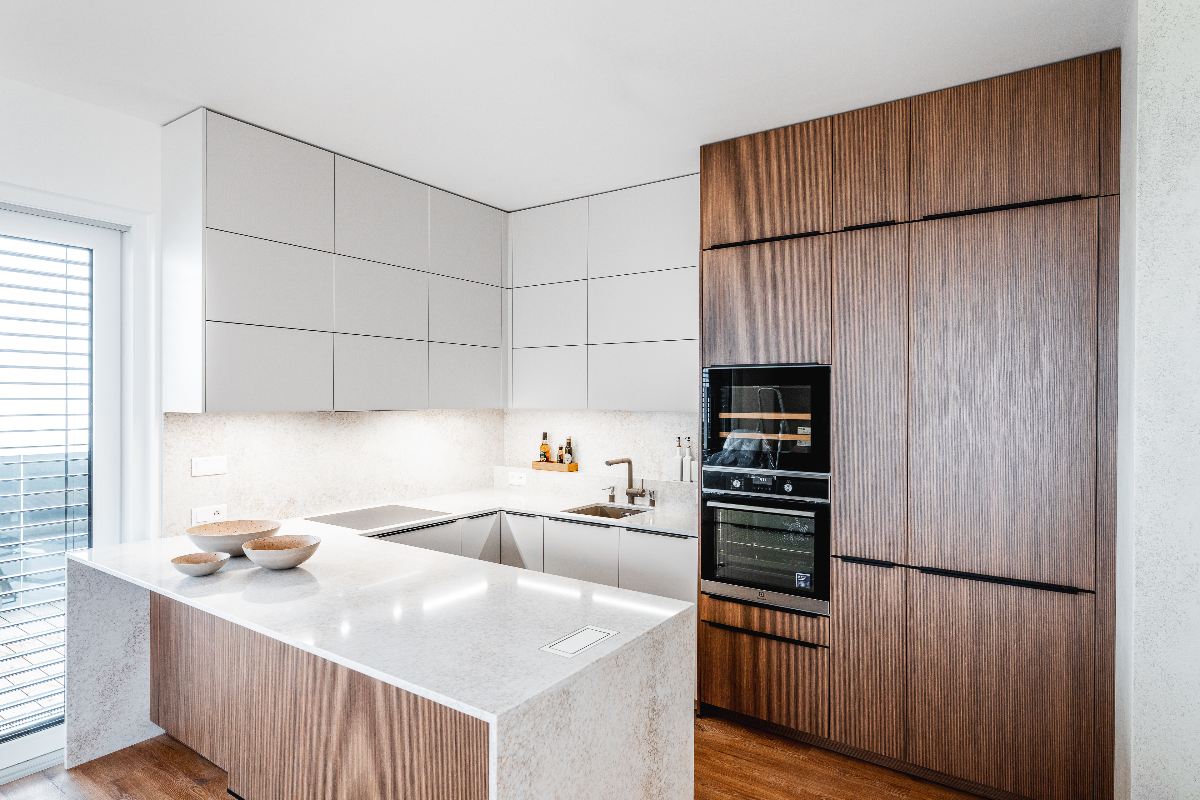 Kuchyně s ohledem na materiály a odstíny byla zvolena od našeho německého dodavatele zn. Schüller.