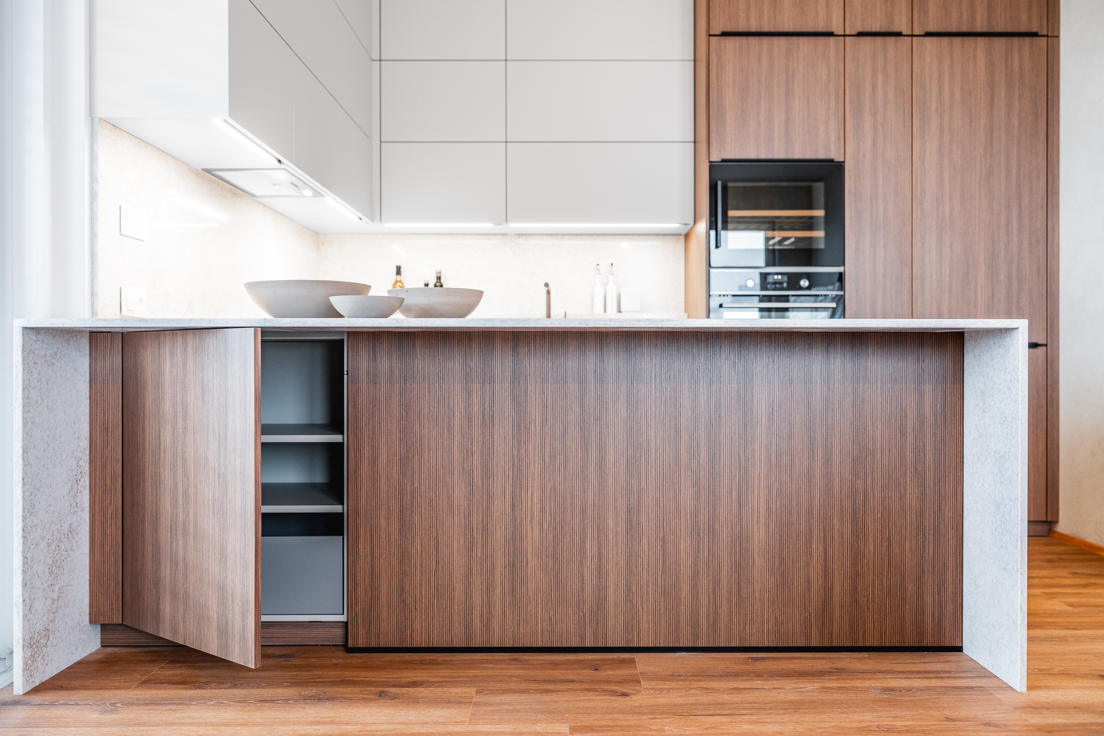 Návrh a realizace interiéru v komplexu Allrisk Meridiem v Brně - část kuchyně
