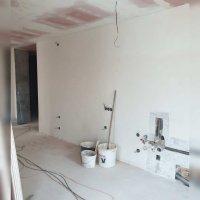 Klient nás oslovil v počáteční fázi, kdy byl od projektanta hotový prvotní projekt a dal nám plnou důvěru. Ve vile z první republiky byla idea propojit dva samostatné byty do jednoho většího. Původní dispozice byla velmi členitá, všude byly pod stropy překlady, nosné stěny, otvory jinde než jsme potřebovali.