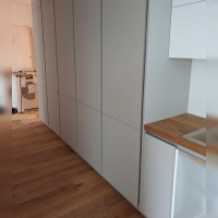 V tomto bytě, kde jsme celý nábytek navrhovali a vyráběli naší zakázkovou výrobou Deho, jsme kladli velký důraz na kvalitní dispozici řešení, na kvalitní materiály, které majitelé preferovali. Ať už se jednalo o masivní dubové podlahy, masivní dubovou pracovní desku v kuchyni, podsvícenou onyxovou stěnu ostrůvku nebo nábytek s úpravou AFP.