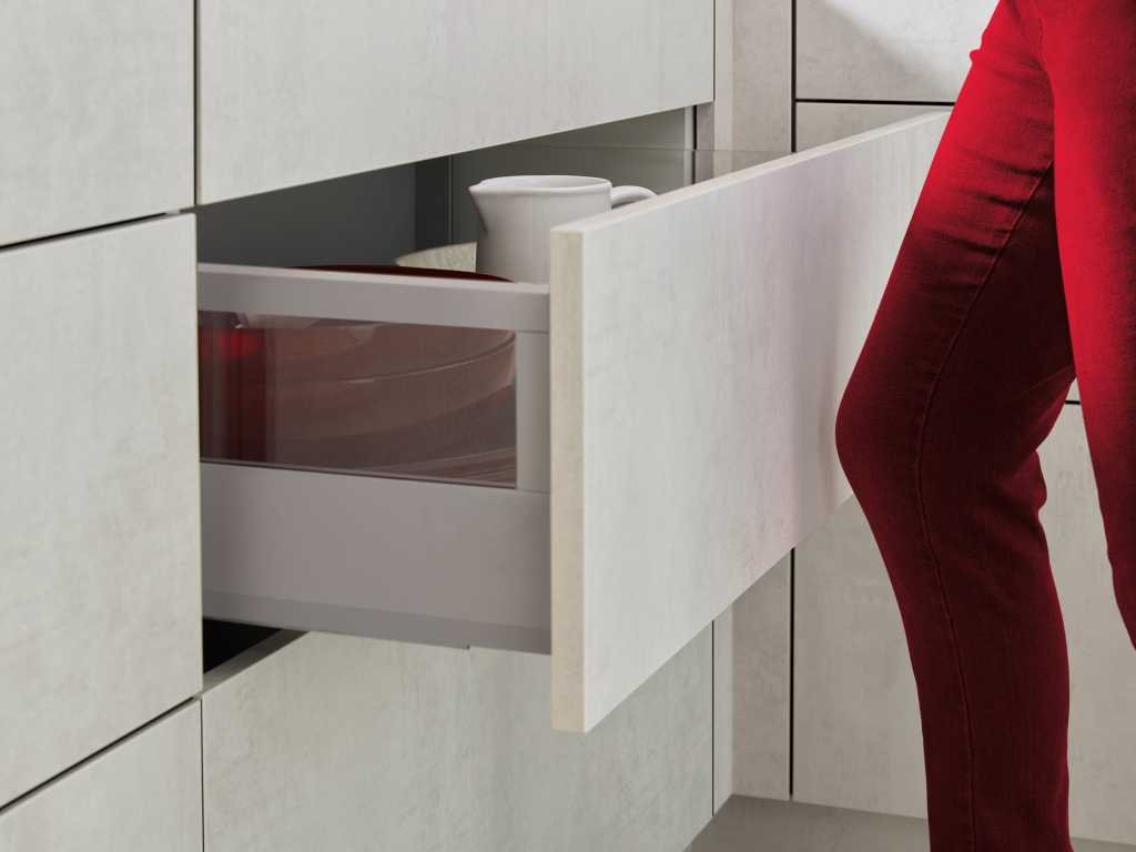 - skleněná výplň bočnic zásuvek Blum Optimus