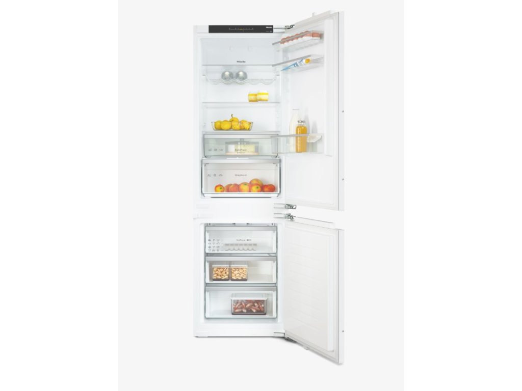 Plně vestavný 2-dveřový model vybaven funkcemi DuplexCool, VarioRoom, NoFrost a DailyFresh se 2 přihrádkami a s pevnými, vyměnitelnými (levá/pravá) panty pro uchycení kuchyňských dvířek s LED osvětlením v chladící části.