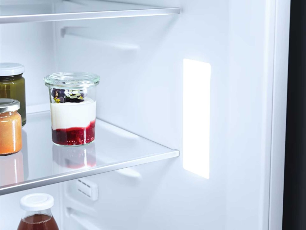 Plně vestavný 2-dveřový model vybaven funkcemi DuplexCool, VarioRoom, NoFrost a DailyFresh se 2 přihrádkami a s pevnými, vyměnitelnými (levá/pravá) panty pro uchycení kuchyňských dvířek s LED osvětlením v chladící části.