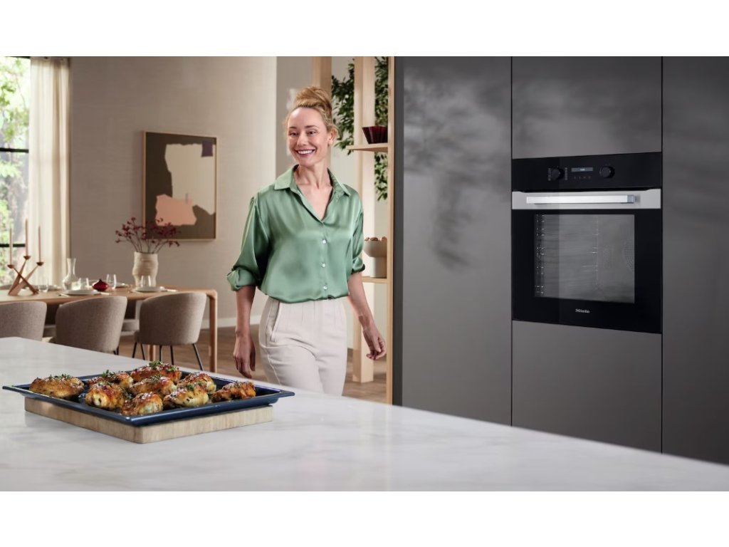 Vestavná pečící trouba Miele H 2861-1 B 125 Edition řady PureLine (nerez)/VitroLine (obsidian) v moderním designu s Miele@home propojením, s pyrolýzou (samočistění pomocí vysoké teploty), 8 pečících programů vč. automatického programu a AirFry funkcí za příznivou cenu. Dvířka trouby se jemným elegantním tlumeným pohybem otevřou (SoftOpen) a i zavřou (SoftClose). Je vyráběn ve 2 provedeních a to v nerezovém CleanSteel a obsidian černém provedení.